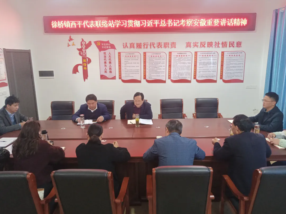 11月27日,徐桥镇西平代表联络站组织代表集中学习习近平总书记考察安徽重要讲话精神暨民生实事项目征求意见座谈会,县人大常委会党组书记、主任李加生,县政府副县长王丙宇参加活动,徐桥镇人大、政府主要负责同志陪同。