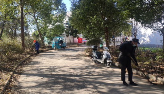 活动中,大家分工合作、互相配合,不怕脏、不怕累,使用铁锹、扫帚、垃圾清理车等工具清扫村主干道路、清除道路两旁杂草、运送垃圾。通过多个小时的认真清扫,村主干道路变得干净整洁。