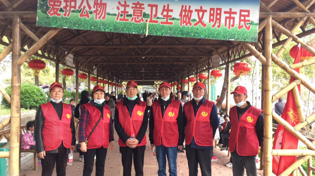 3月31日,风和日丽,五老同志们穿上志愿服,戴好口罩,早早的等待在学校门口,准备带领小朋友们开展踏青春游活动。五老们分左右两边维护小朋友们的现场秩序,在十字路口指挥交通,牵着小朋友的小手安全通过。