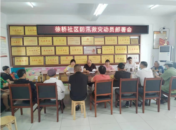 近日,徐桥社区召开防汛救灾动员部署会?;嵋榍康鳎衷谡捣姥吹闹匾逼?,要求与会成员勇于担责、敢于担当,把居民生命财产安全放在首位,会上调整了防汛应急小分队成员,并明确了防汛责任和人员分工,重点部署老街危、旧房屋、湖滨公园等人群聚集区的安全排查及防汛救灾紧急应对措施。