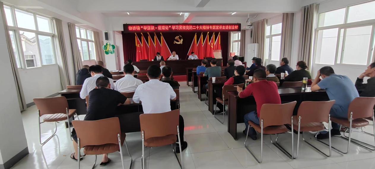 为深入学习贯彻党的二十大精神,近日,徐桥镇“举旗帜·送理论”学习贯彻党的二十大精神专题宣讲走进创业村,创业村村两委、党员、村民代表聆听宣讲会。