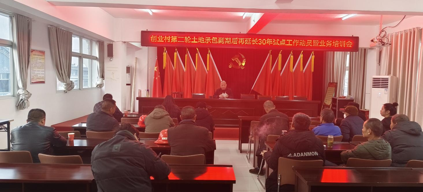 1月20日,创业村召开第二轮土地承包到期后再延长30年试点工作动员暨业务培训会,深入贯彻落实党中央相关政策文件精神,旨在保持农村土地承包关系稳定并长久不变。