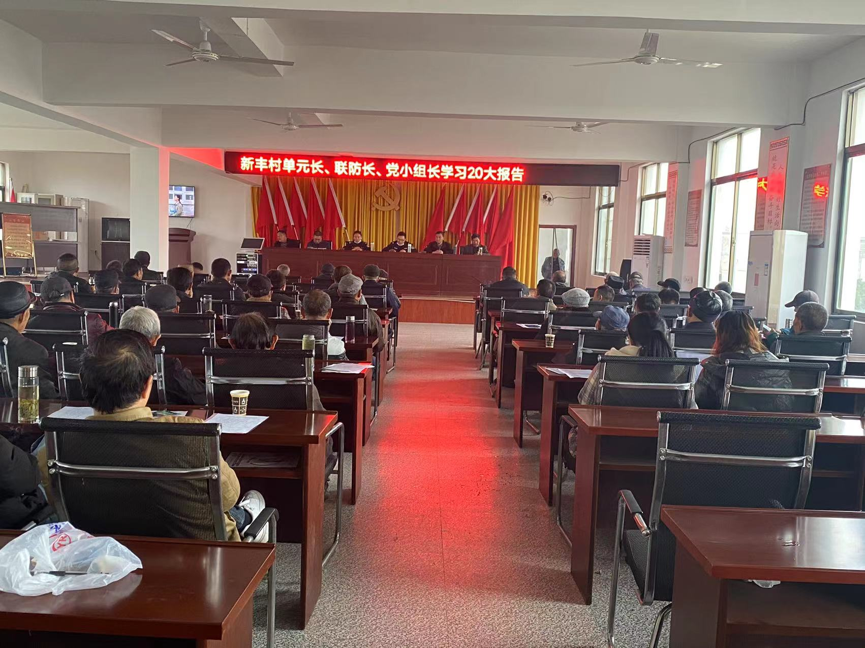 2022年12月2日,在新丰村部会议室,新丰村单元长、联防长、党小组长集中学习党的二十大报告。