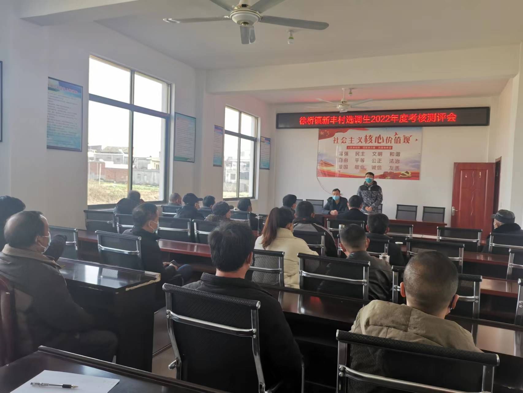2022年12月15日,在新丰村部会议室,村两委、村民代表和党员参加了新丰村选调生2022年度考核测评会。