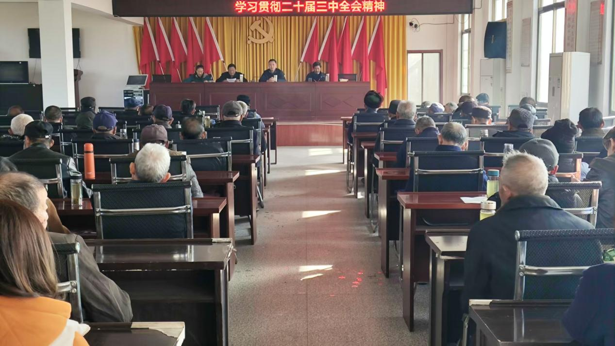 2024年11月26日,新丰村召开全体党员大会,由组织委员王翠云同志带领学习党的二十届三中全会精神。