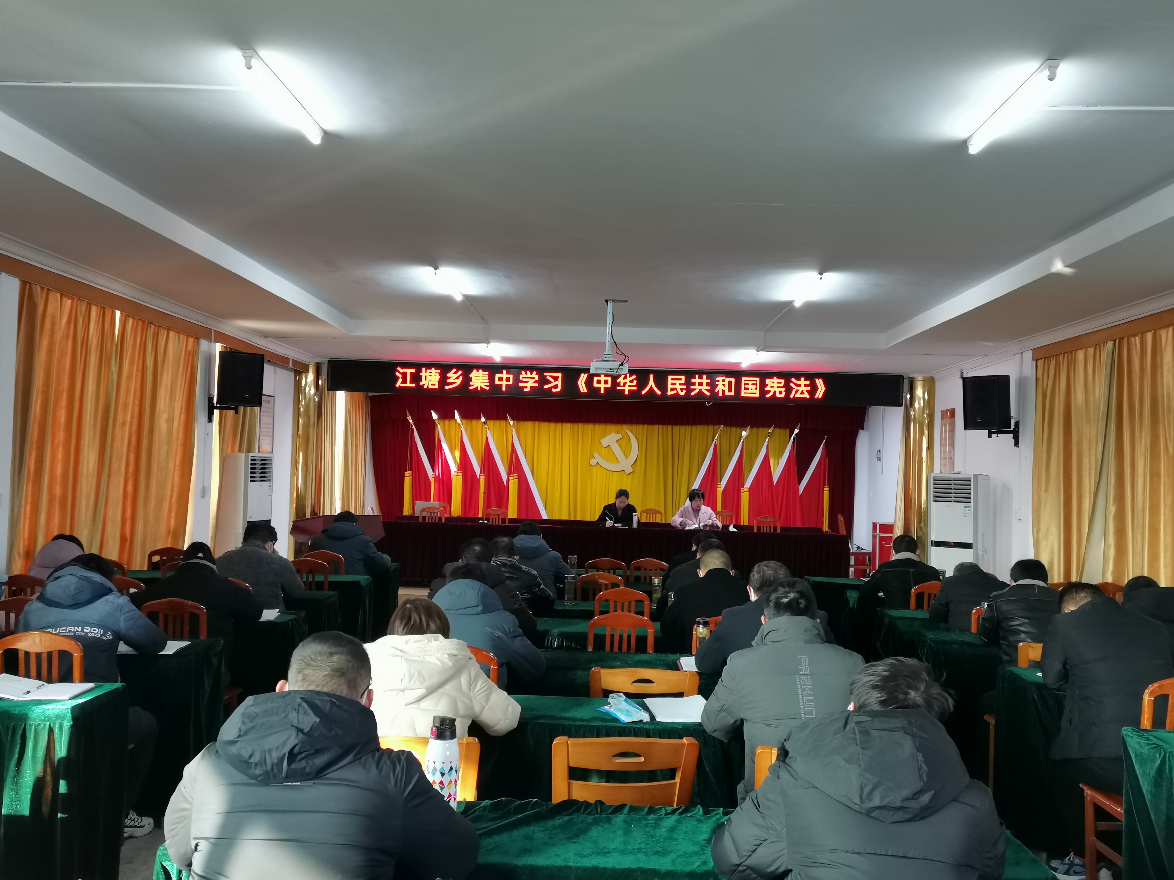 close为深刻学习领会习近平总书记关于依法治国的重要论述,切实提高基层党员干部依法履职能力,12月6日,江塘乡召开党委中心组(扩大)学习会,乡人大主席江本芳专题领学《中华人民共和国宪法》。乡机关全体干部职工参加学习会。