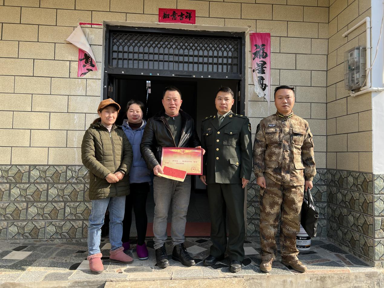 close为深入开展拥军优属活动,推进拥军政策扎实有效落实,进一步激励现役军人安心服役,建功立业,1月17日,江塘乡武装部分管领导和退役军人服务站工作人员到白云村为荣获三等功现役军人蔡文祥家庭送喜报,随后分别到大塘村、五星村为荣获“四有”优秀士兵现役军人王健和李剑家庭,毕岭村“四有”优秀军官现役军人刘新华家庭送去喜报,对他们获得的荣誉表示祝贺,并送去党和政府的关怀与祝福。