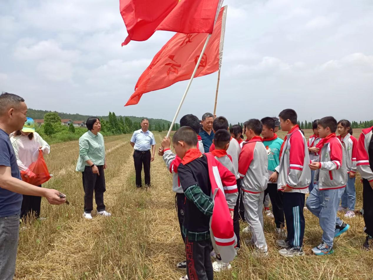 close四月南风大麦黄,枣花未落桐叶长。为深化“五育并举”育人格局,促进学生全面发展,增强学生劳动实践能力,5月23日,江塘乡关工委、中心学校、老年学校、白云村关工委组织白云小学高年级师生到沙湖农场小麦种植基地开展学生劳动实践活动。