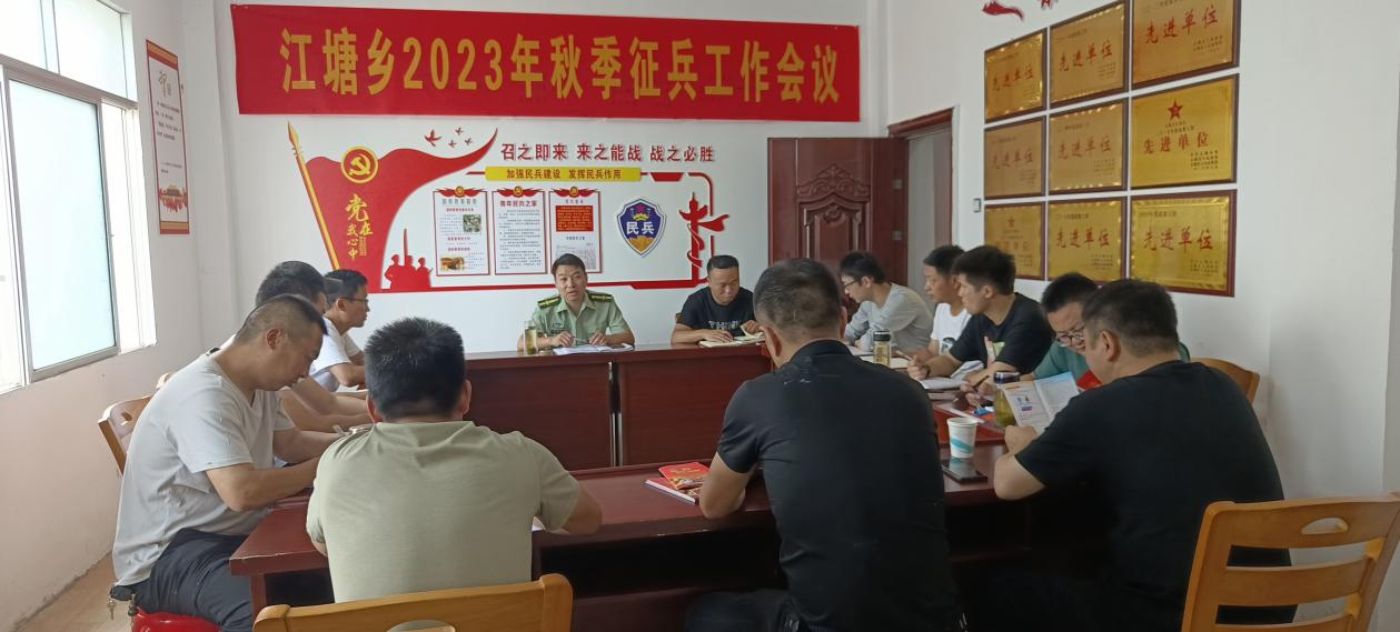 close为贯彻落实省市县征兵工作动员部署会议精神,切实做好2023年秋季征兵工作,6月9日上午,江塘乡召开2023年秋季征兵工作部署会,乡党委委员、武装部长、武装部工作人员及各村民兵营长参加会议。