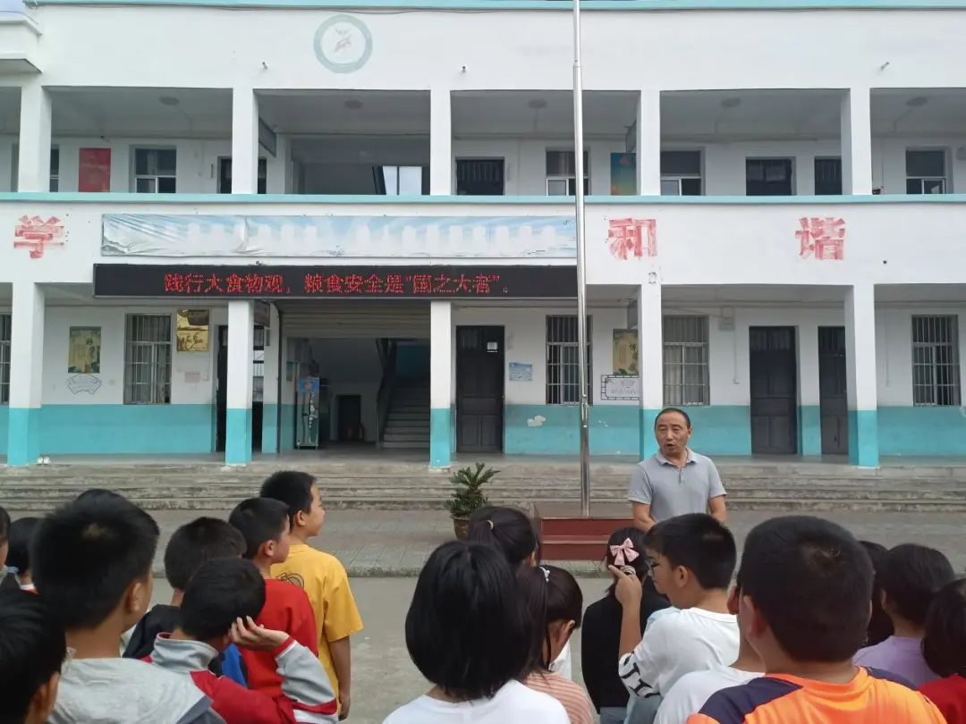 以培养学生德智体美劳全面发展为教育目标,学校高度重视世界粮食日和全国粮食安全宣传周活动的开展,成立了以校长为组长的领导小组。10月16日上午,学校利用早操集会时间,启动2023年世界粮食日和粮食安全宣传周主题教育活动,全校师生全部参与,学校分管负责同志作动员讲话。