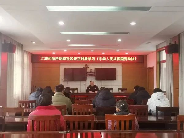 close为落实社区矫正管理教育措施,让社区矫正对象懂得更多法律知识,增强依法维权意识,近日,江塘司法所组织辖区社区矫正对象集中学习《中华人民共和国劳动法》