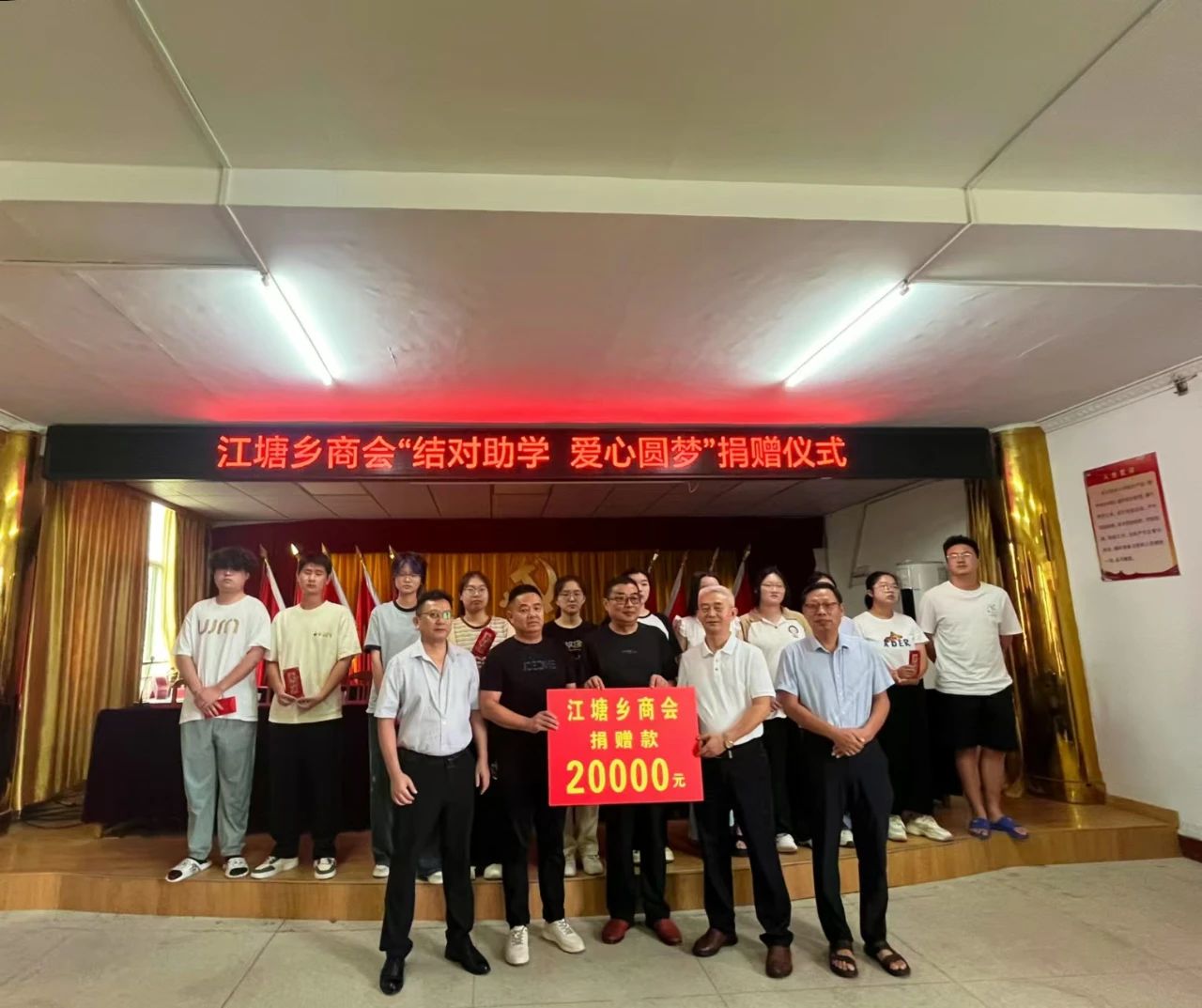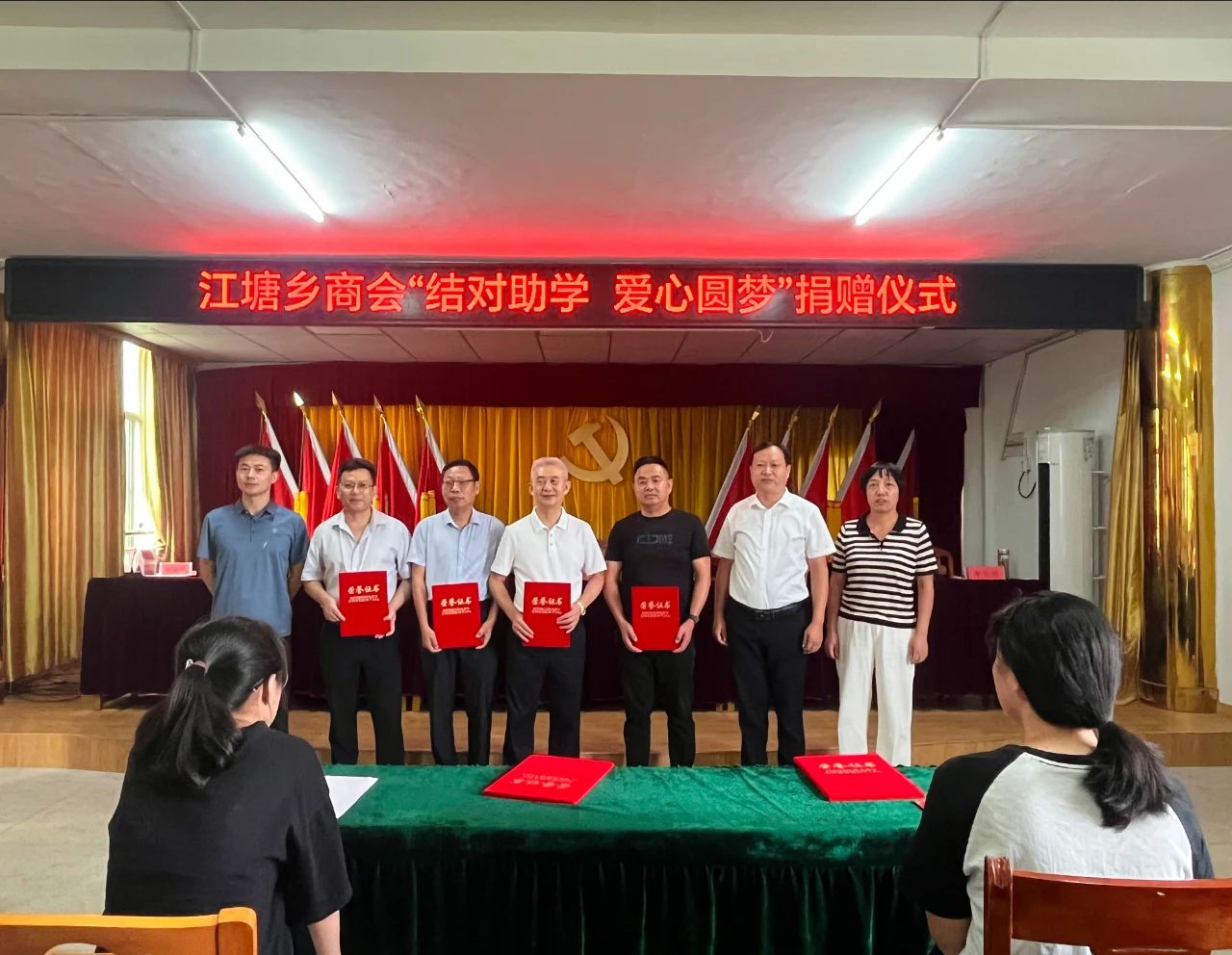 close8月28日,江塘乡举行“结对助学 爱心圆梦”捐赠仪式,江塘乡党委主要负责人、人大主席、相关部门负责人、学生代表参加捐赠仪式,出席仪式的商会企业有安徽太平建筑有限公司、太湖县华瑞网络工程技术有限公司、太湖县华源监理公司、安徽省柳绿朝烟农业发展有限公司、安徽省景湖农业发展有限公司。