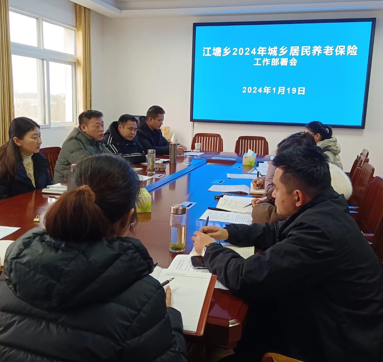 为做好我乡城乡居民养老保险征缴工作,1月19日,江塘乡召开2024年城乡居民养老保险工作部署会,县居保中心负责人、乡分管领导、乡劳保所业务员及各村居保业务员参加会议。