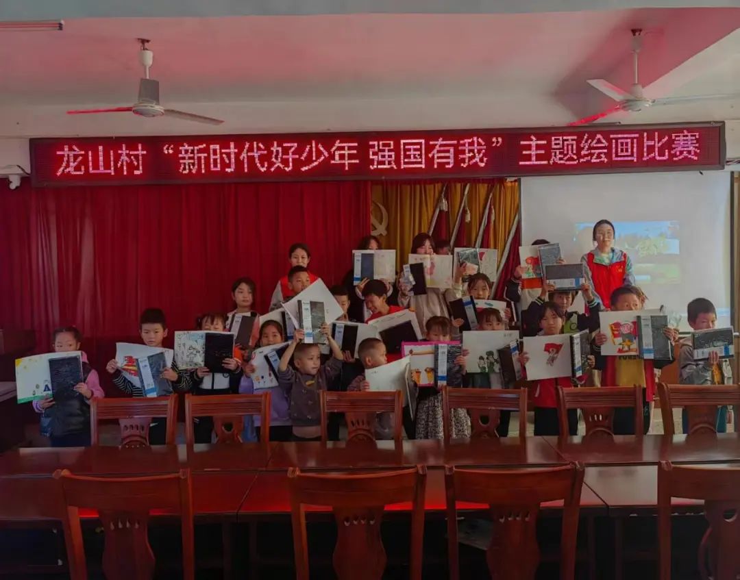 为进一步加强爱国主义教育,坚定民族自信,弘扬伟大的中华民族精神,提高学生的艺术修养和审美情操,给广大热爱绘画的同学提供一个展示自我的平台。龙山村联合村关工委、老年教学点、党员志愿者、妇联、共青团举行了“新时代好少年 强国有我”少儿绘画比赛。