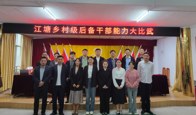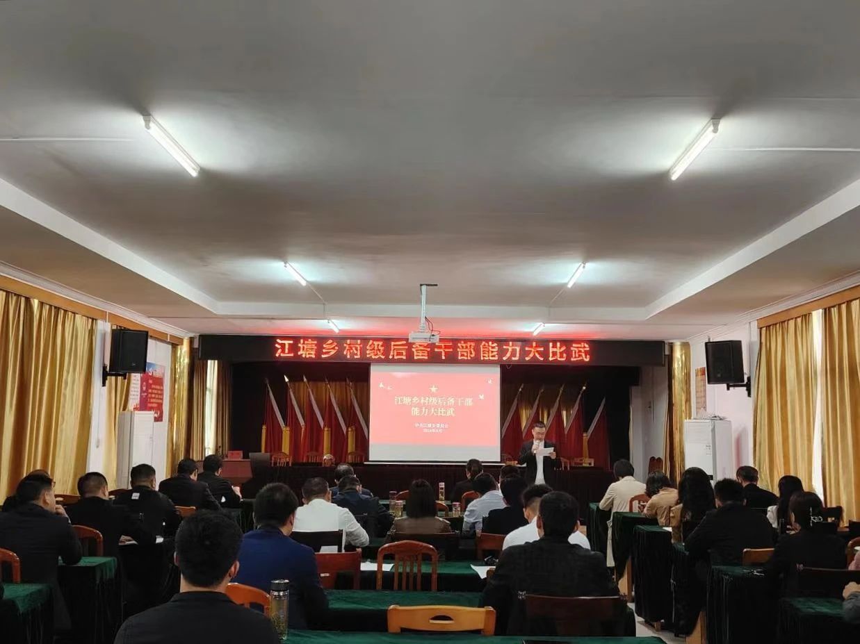4月17日上午,江塘乡举办村级后备干部能力大比武,乡全体班子成员、二级机构负责人、各村书记和村级后备干部参加活动。