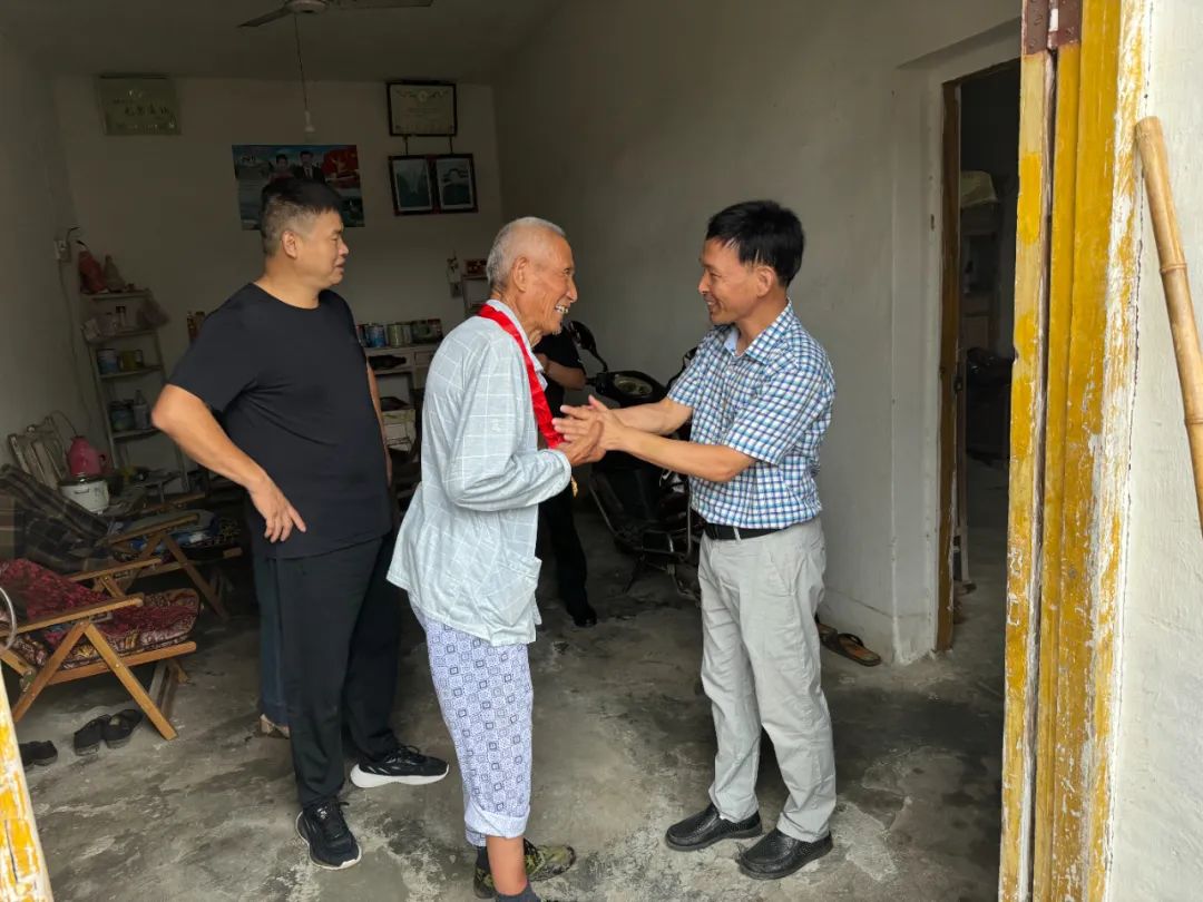 7月3日,龙山村驻村工作队联合村“两委”到村民组督查农户汛期受灾情况,并走访慰问困难老党员,为他们送上组织的关怀与温暖,并致以节日的问候。