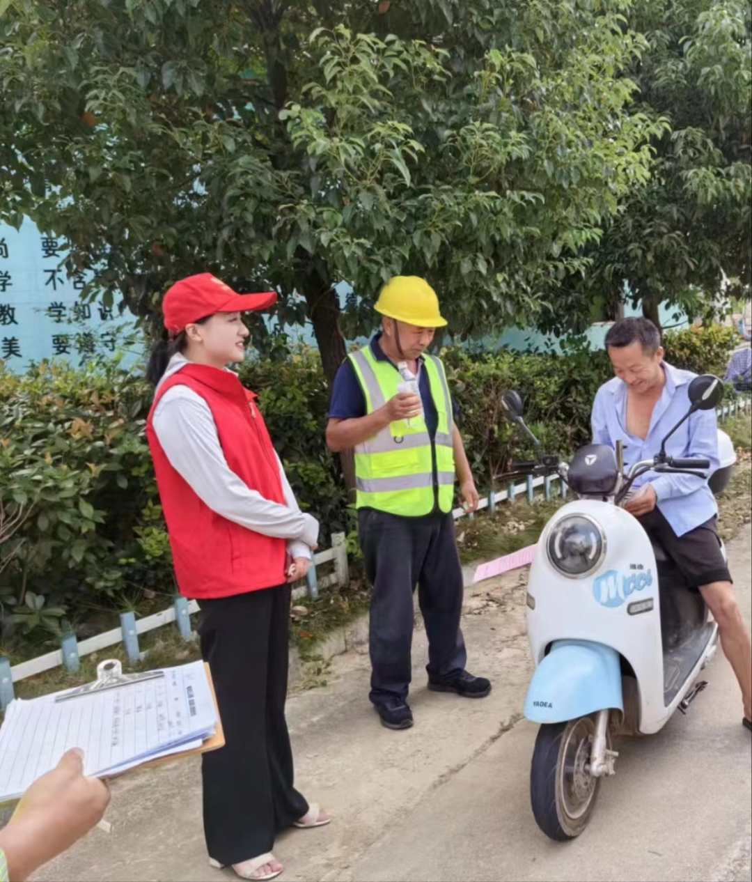 工作中,交通安全劝导员、志愿者在主要路口路段、学校周边和重点时段,科学确定上岗时间,严格落实“七个必上”时段向过往农用电动三轮车、摩托车驾驶员发放交通安全宣传提示单,对摩托车、电动三轮车驾驶员未戴安全头盔、非法载人、超速、超载等交通违法行为进行面对面的劝导、纠正和教育,详细讲述交通违法行为发生可能带来的交通安全影响及危害,劝导当事人自觉抵制交通违法行为,养成文明驾驶习惯,让交通安全在群众心中形成一把尺,让文明意识和安全意识深入人心。通过交通安全劝导工作的开展,提高了群众交通安全防护意识,同时消除道路交通安全隐患。