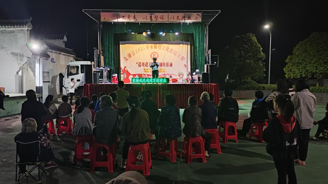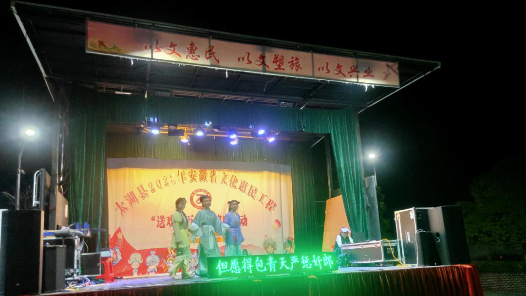本次演出的节目形式多种多样,有戏曲、歌曲、传统小戏等。特别是太湖曲子戏,作为安徽省濒临失传的剧种,在表演期间深受村民们的喜爱。演员们地地道道的太湖话,将日常生活中的真实生活生动地展现出来,赢得了村民们的阵阵喝彩,让村民们如同置身于剧场,沉浸在这浓郁的传统艺术氛围中。