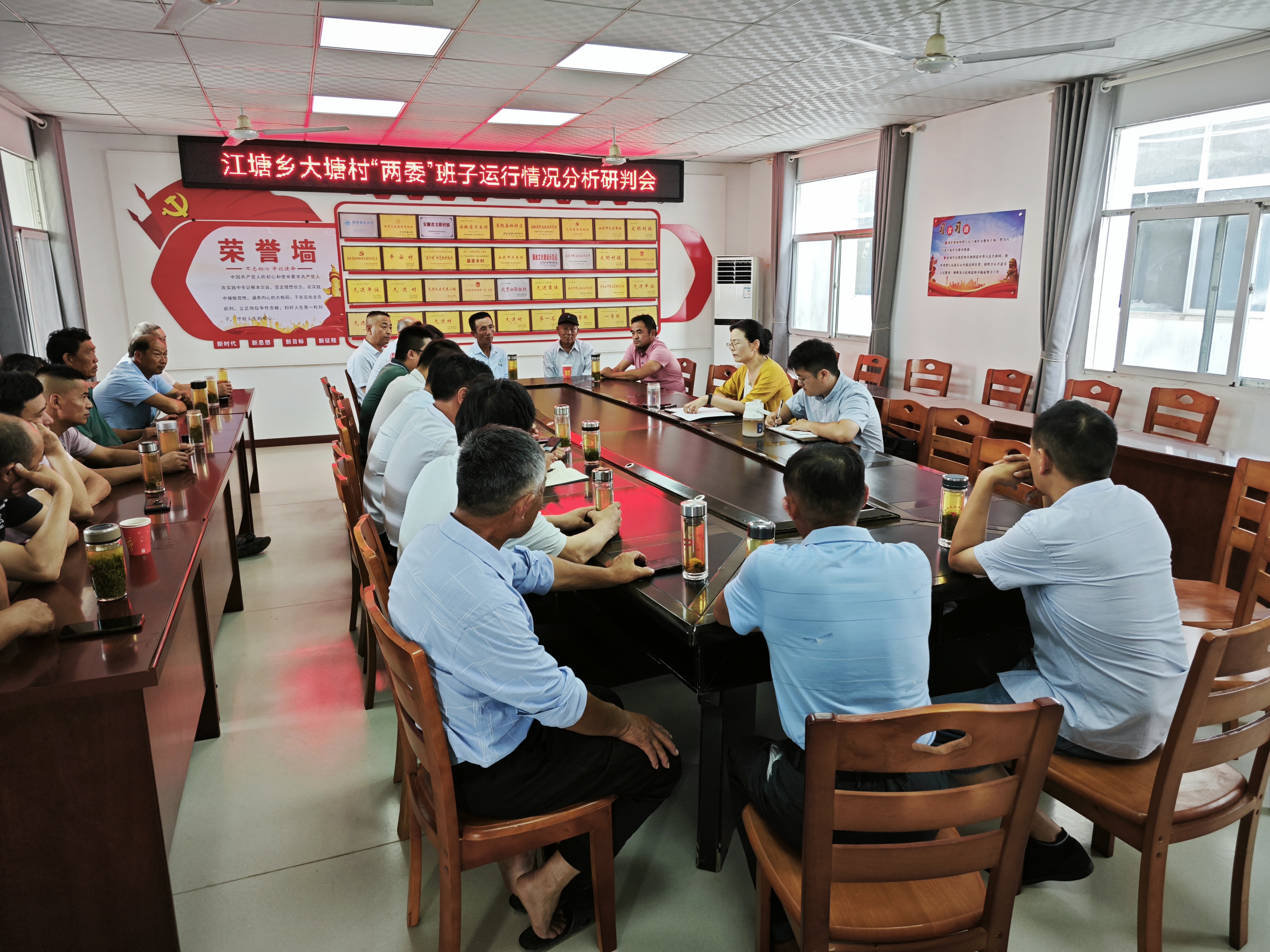 6月9日上午,江塘乡大塘村召开村“两委”班子届中分析研判会,乡蹲点干部、驻村工作队、村两委成员、党员、村民代表30余人参加会议。