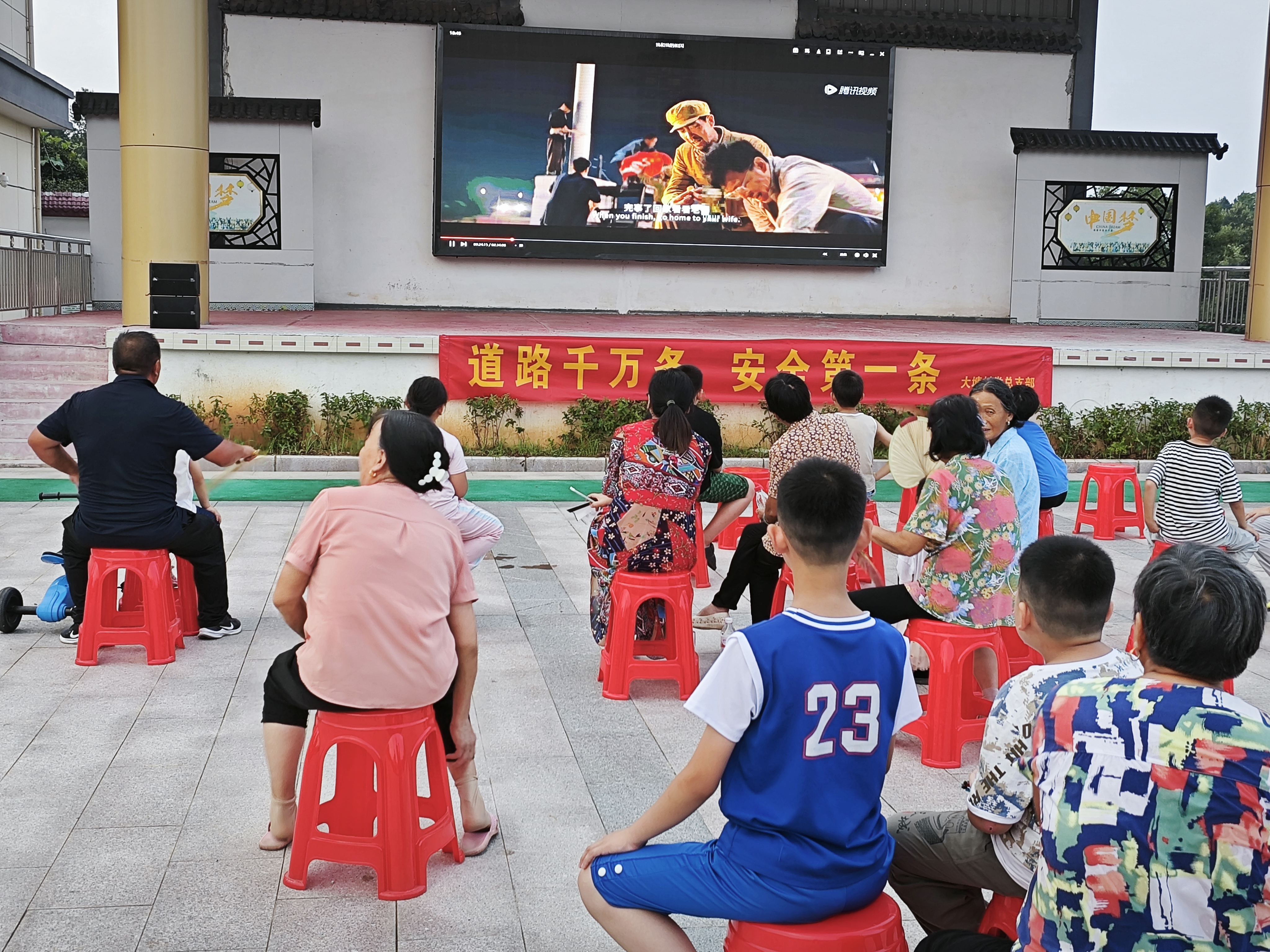 “放电影啦,大家快来看呀!”一听说晚上放电影,村里老人们陆陆续续来到广场上等待电影的放映。晚上六点半,电影《我和我的祖国》准时放送,广场上吸引了大约六十来人,老人们津津有味地沉浸其中,也有路过的村民驻足观影。这是一部由7个小短剧组成的电影,讲诉了新中国成立70年间普通百姓和祖国息息相关的故事。村里汪炳生老人说:“当义勇军进行曲奏响时,我情不自禁的起立,就如同真正见证了1949年10月1日那庄严肃穆的第一次升旗”。