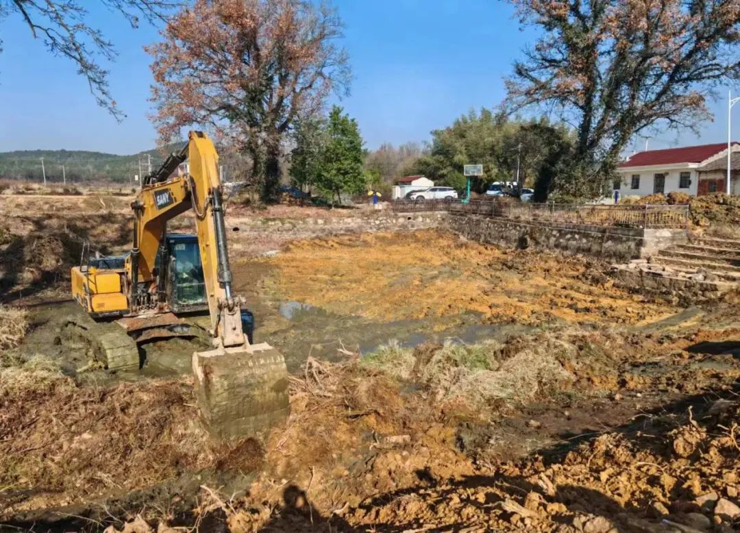 “枯水塘”变“丰收塘”助农生产。在大塘村当家塘治理工程现场,大型挖掘机正在进行清淤。这座当家塘位于大塘村兴屋组,由于年久失修,塘边杂草丛生,塘内淤泥堆积,蓄水能力不满足灌溉需求,是名副其实的“枯水塘”,每逢干旱天气,用水矛盾十分突出,严重影响了村民的生产生活。大塘村通过积极争取项目资金,抓住枯水期沟塘水位下降、易于清理的有利时机,对当家塘进行扩容清淤,提升蓄水能力,并对塘埂翻新、夯实、修建护坡,通过做活“水文章”,美了乡村“颜值”,添了乡村“气质”。