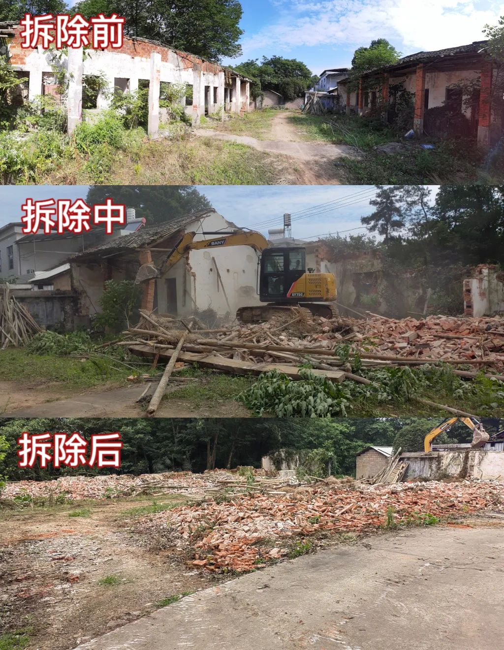 在乡政府的领导下,经过毕岭村委会的多方协调,这座老校舍终于迎来了拆除的时刻。