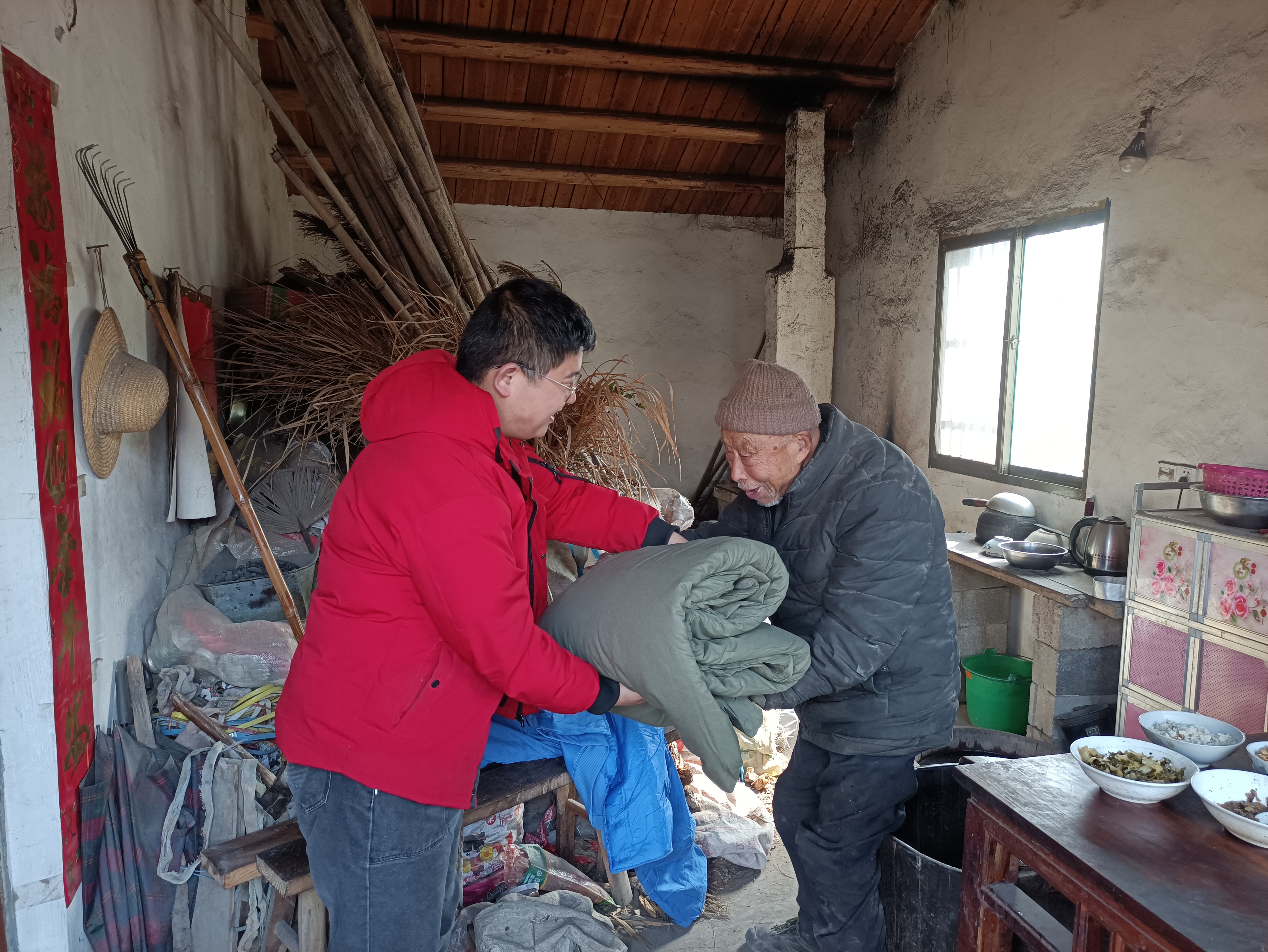 每到一户,村两委成员与老人亲切交谈,详细询问老人身体情况,叮嘱老人用火用电安全,并送上慰问品和新春祝福。
