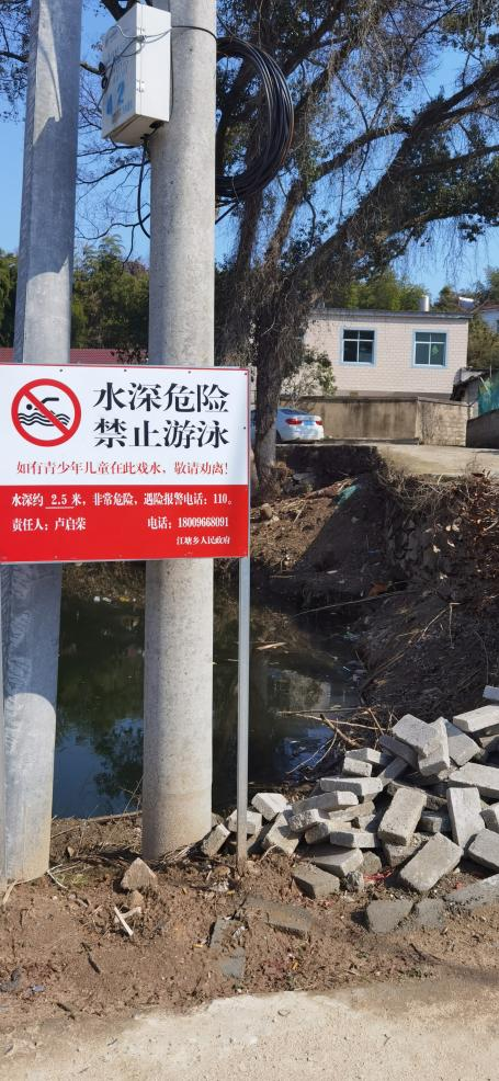 何墩村组织志愿者排查隐患,在易发生溺水事故的池塘、沟渠等水域加设警示标志、安装隔离及防护措施,全面清除易发溺水事故安全隐患,加强安全管理。