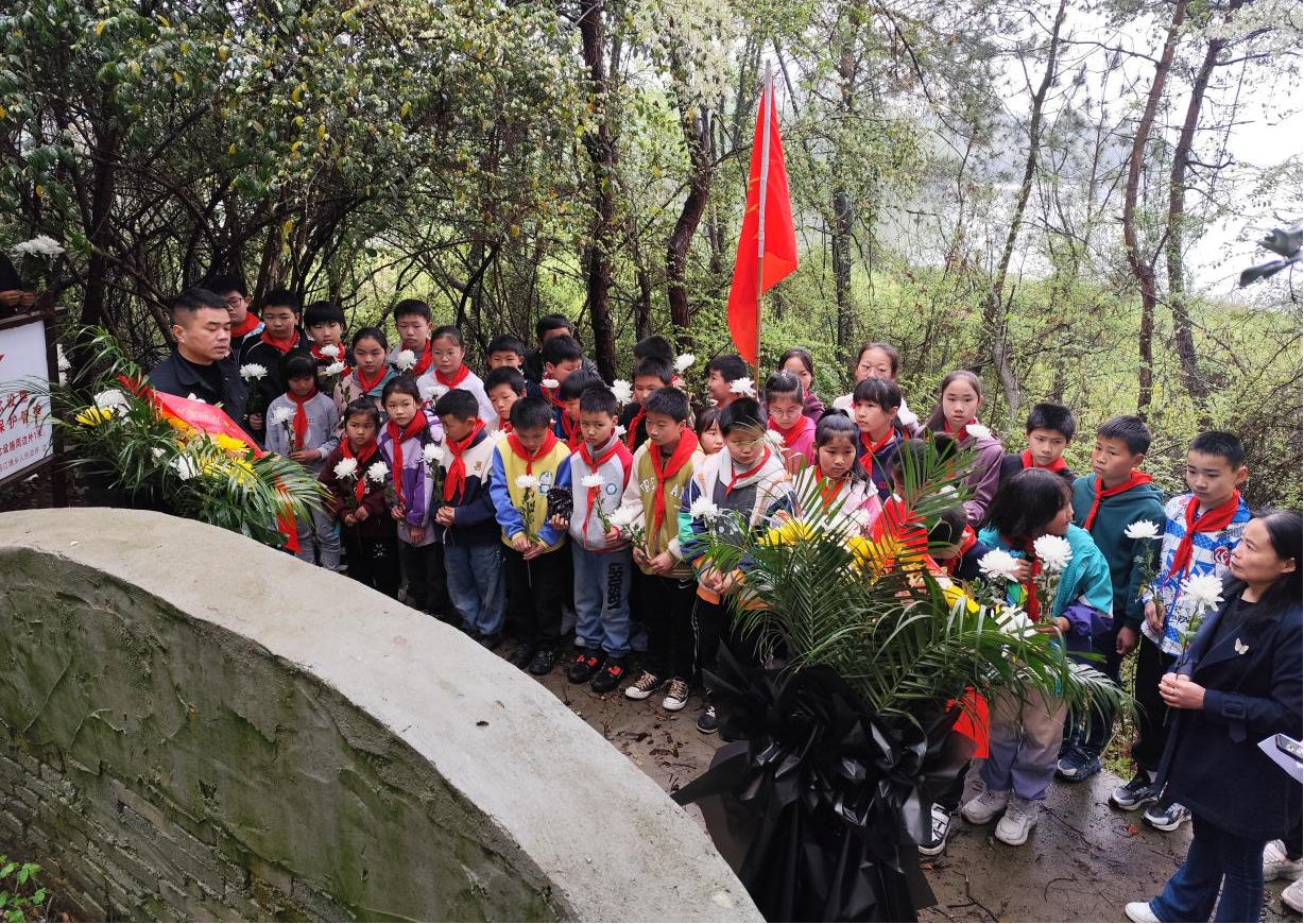上午,龙寨小学50余名师生与村“两委”一行来到章廷琪烈士纪念碑前,少先队员唱着《中国少年先锋队》队歌,在庄严肃穆的悼念仪式中,村党总支向烈士墓碑敬献了花篮,老师学生逐一向烈士敬献了鲜花,大家神情肃穆地进行鞠躬,表达了对革命先烈的无限敬仰与哀思。最后,学生代表表示,“先人已逝,精神犹在。让我们追寻他们的足迹;感受他们的执着的信仰;学习他们追求真理、是非分明、立场坚定的优秀品质;学习他们奋勇向前、不畏艰险、乐于奉献的高尚情操!”