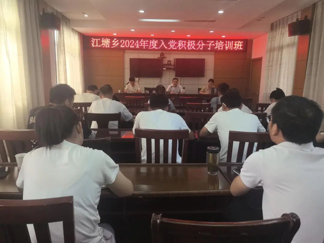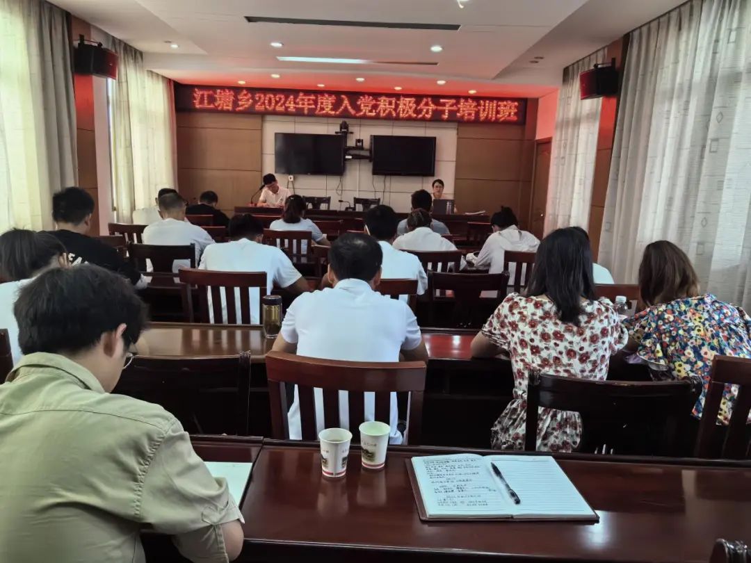 为加强对入党积极分子的培养教育,严把发展党员“入口关”和“质量关”,8月15日,江塘乡举办2024年入党积极分子培训班,乡机关、各村乡直各单位和非公企业党支部入党积极分子参训参学。