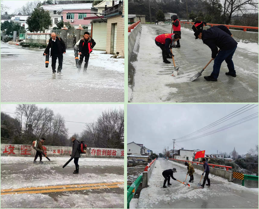 2月22日夜至23日突下冻雨大雪,这场冻雨大雪给幸福村村民出行带来了极大的不便,尤其是村、组主要道路结冰及积雪覆盖,给村民的生活和出行造成了很大的安全隐患。面对突如其来的冻雨大雪,幸福村两委迅速投入到清冰除雪保平安行动中,全力保障村民出行安全。