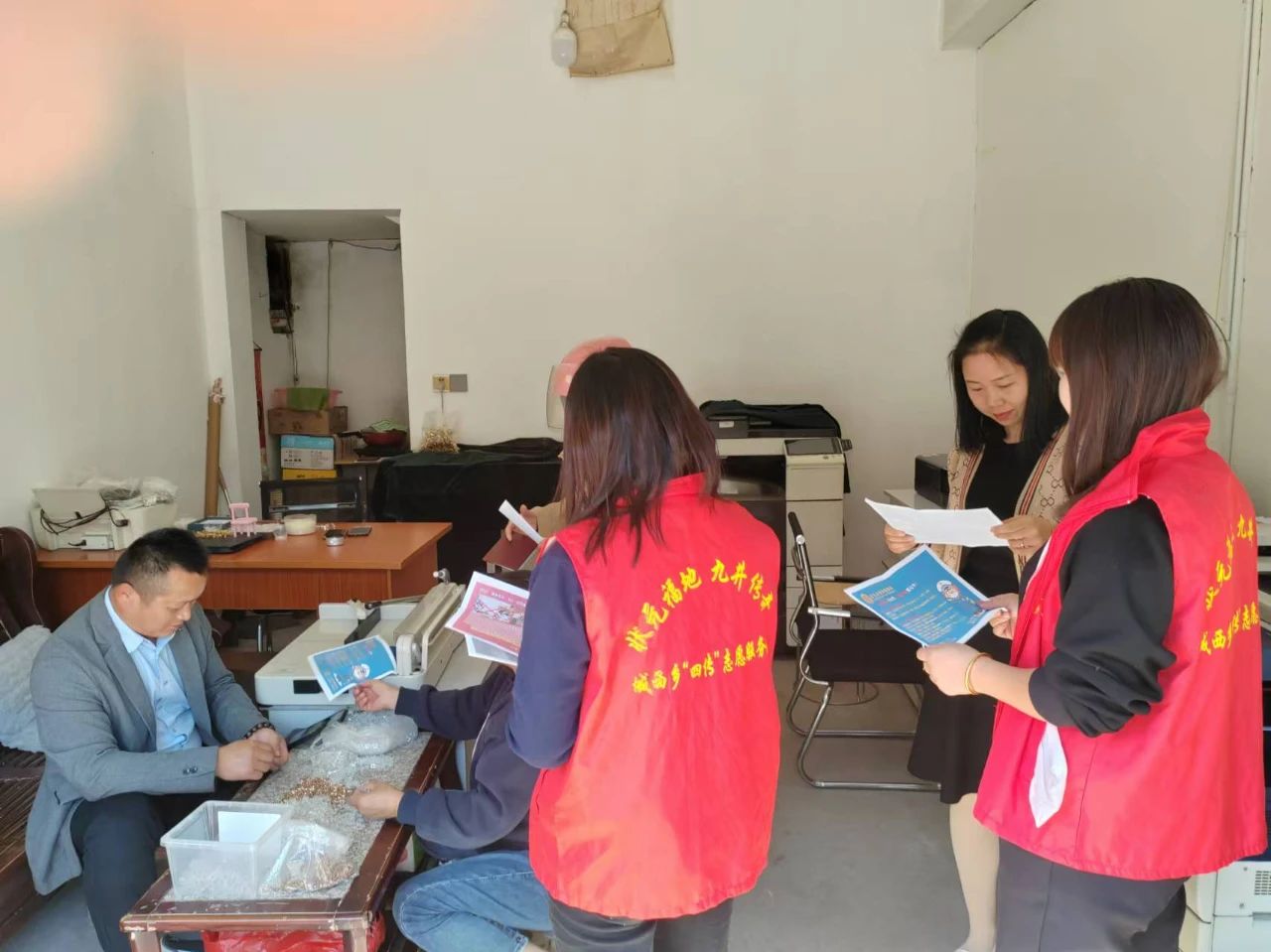 志愿者围绕“全民消防,生命至上”在村内主干道小学、幼儿园主要人口密集地段,通过发放宣传单,面对面讲解解用火、用电、用气的安全知识,提醒村民主动防范安全事故,避免生命、财产损失。
