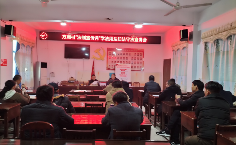 方洲村位于城西乡西北角,全村设34个村民组,2个移民点,910户3147人。2020年方洲村被评为县级民主法治示范村、市级民主法治示范村。方洲村党总支严格落实上级党委政府对法治建设的要求,紧紧围绕法律援助便民服务和法律援助基础建设,深入群众,了解群众的所思所盼,建立村级文化休闲广场、法治宣传广场,认真开展法律宣传,提高村民法治意识,全力打造文明、和谐、富裕的新农村。