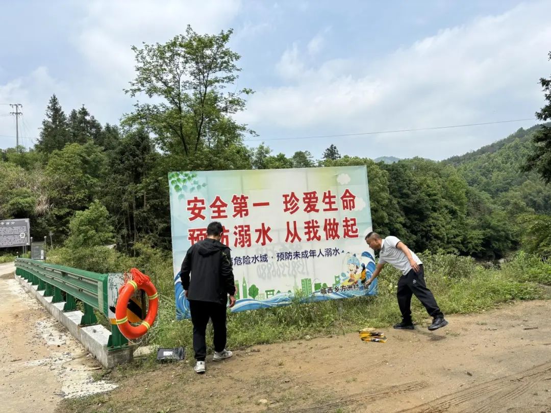 落实保障促安全。采取“乡蹲点干部+村干+网格员”包保责任制,村医护人员随时做好应急准备工作,在辖区内主要河流、塘、渠每日开展防溺水巡查,悬挂横幅,设置安全警示牌,并在重点水域投放救生设备,防止意外落水,进一步提高群众警惕性和关注度,降低安全隐患。借助水库“三个责任人”、河长巡河和网格员等力量,对全村河库实行网格化管理,在高温天气、节假日及雨水多发时段,对方洲水库及九井溪重点区域指派专人进行看管、巡查,及时对在水域周边的嬉戏人员进行劝阻,全力遏制青少年溺水事件的发生。