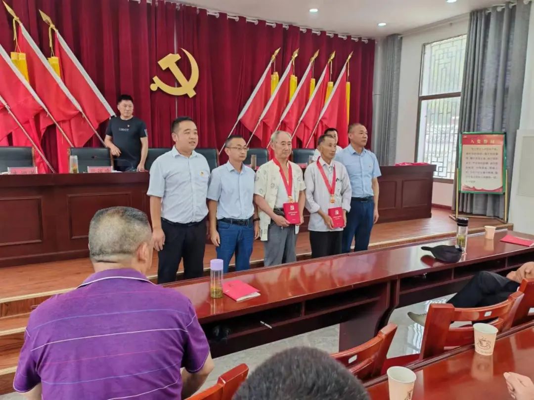 随后,党员们重温入党誓词,汲取奋进力量。全体党员在党旗前高举右拳,庄严起誓,理想信念更加坚定,又感受到了肩膀上沉甸甸的责任和使命。最后党委领导为该村两位老党员颁发了“光荣在党50年”纪念章,为每一位7月份入党的党员准备了“党员政治生日纪念卡”,通过集体政治生日,进一步提升党员意识,增强党员对党组织的归属感和认同感,激励党员在强党性上当先锋,发挥模范作用。