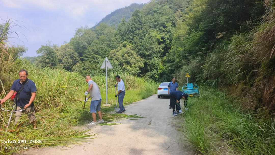 活动现场,机械轰鸣声此起彼伏。道路管护员操作割草机,对公路两侧大面积的高秆杂草、杂乱灌木进行集中切割和铲除,快速清理了主干道上的 “视觉障碍”。对于机械难以触及的边角区域,如道路护栏间隙、路边石缝等,村两委成员手持镰刀、铁锹等工具,弯腰躬身细致清理,不放过任何一处杂草残枝。清理过程中,大家分工明确、协作有序。