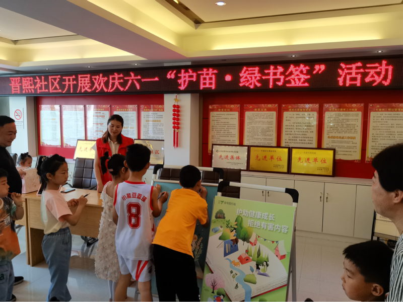 为响应“护苗2023”行动号召,引导少年儿童绿色阅读、文明上网,打造积极健康的青少年思想文化环境,在“六一”国际儿童节当天,晋熙社区邀请辖区少年儿童来到社区开展庆六一“护苗·绿书签”主题宣传活动。