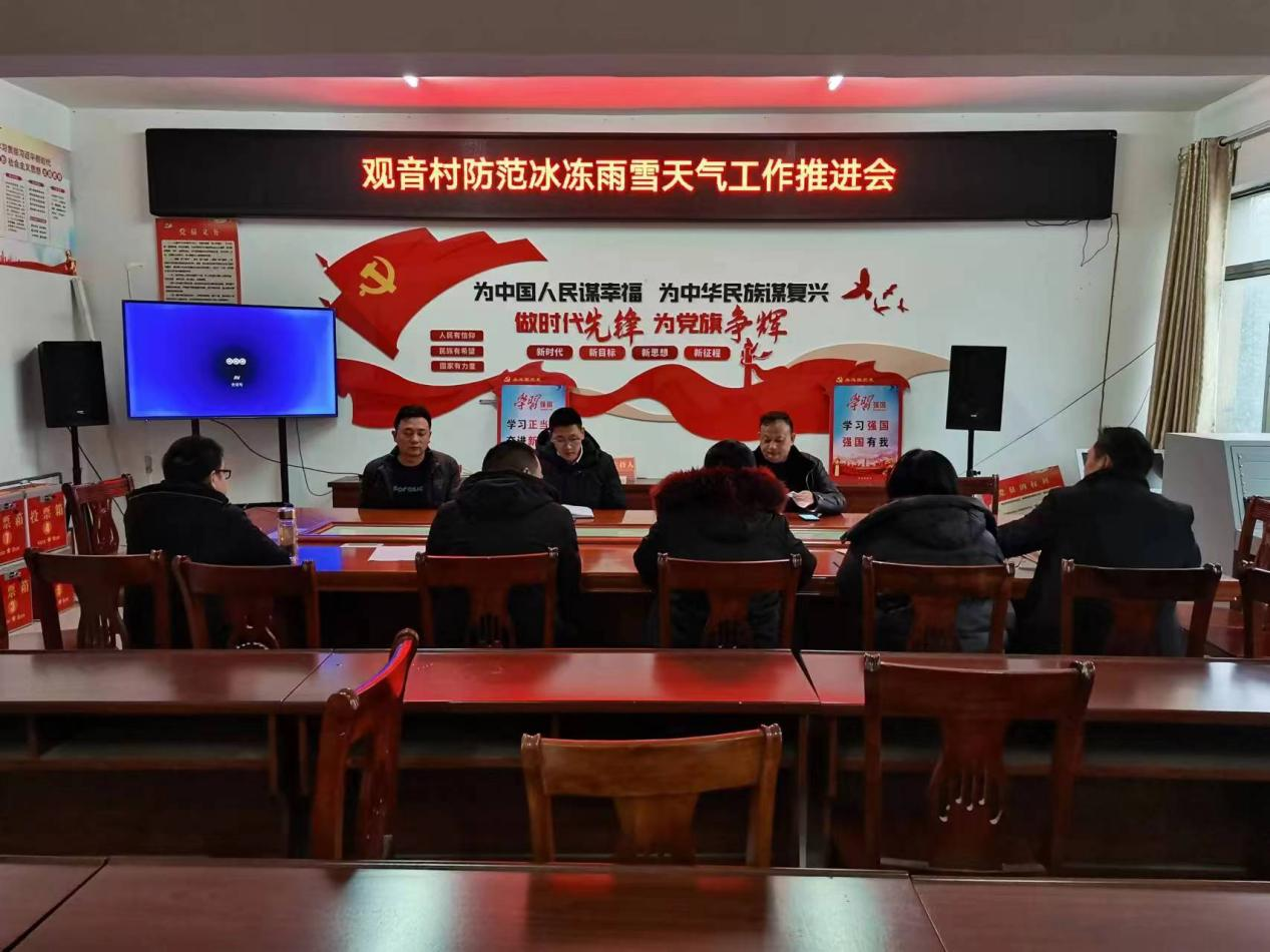 2月5日,观音村召开防范冰冻雨雪天气工作推进会,会上强调:雨雪天气要加强防冻,用电用火,交通出行安全问题。
