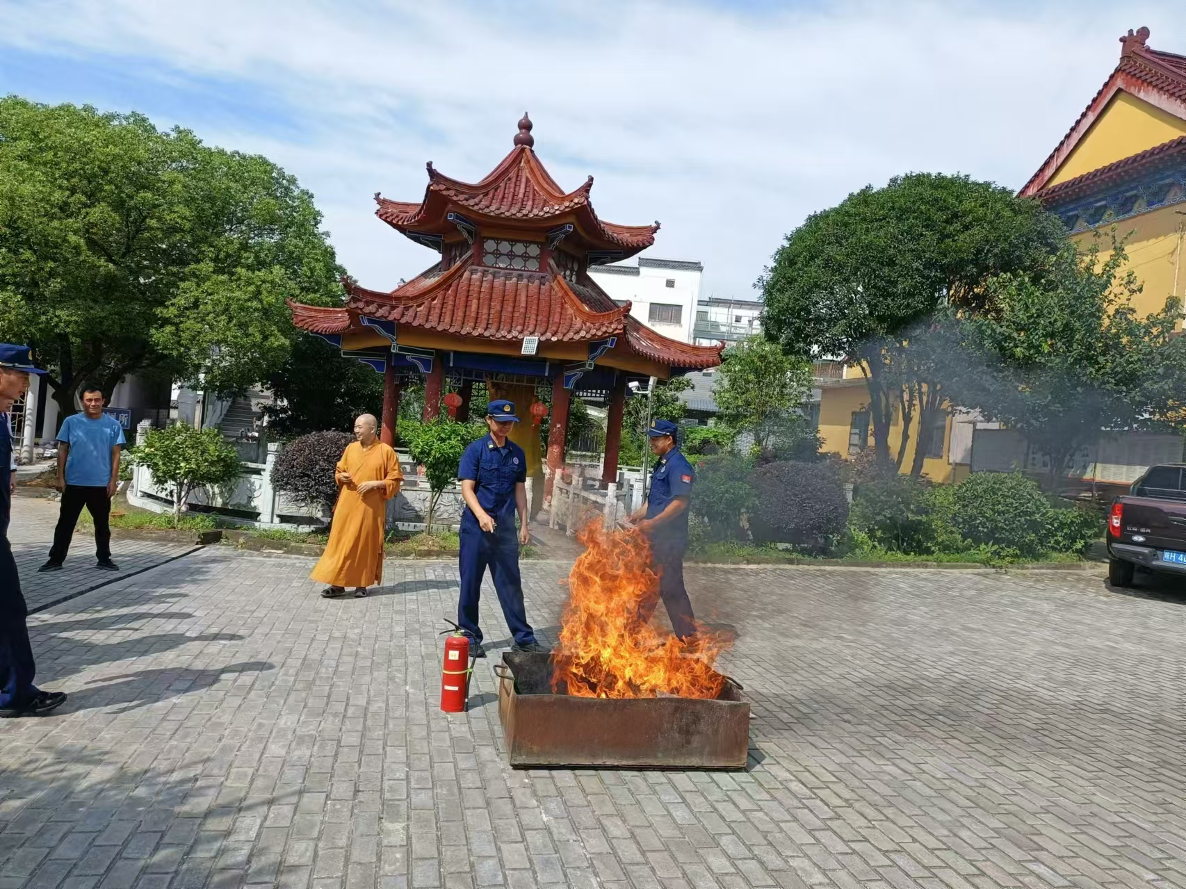 为切实加强观音村辖区宗教领域消防安全工作,提高宗教界人士消防安全意识和应急处置能力,9月19日,观音村赴观音寺开展消防演练活动。