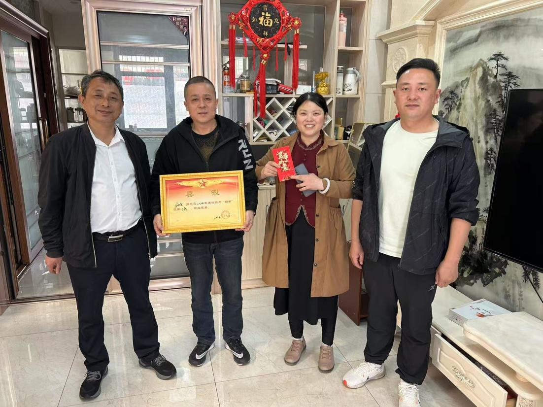 为进一步弘扬拥军优属光荣传统,关心关爱现役军人家庭,营造全社会尊崇军人的良好氛围。4月8日,观音村为辖区内获得“四有”优秀士兵称号的现役军人家属送去喜报,将党和政府的关怀与温暖送到他们家中。