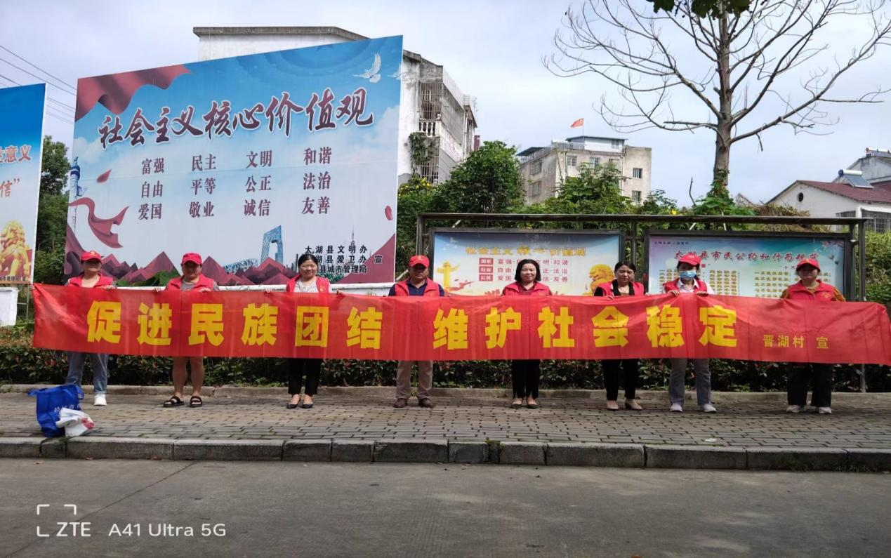 为广泛深入开展党的民族政策宣传教育活动,积极营造民族团结的浓厚氛围,近期,晋湖村在辖区内开展了以“促进民族团结 维护社会稳定”为主题的宣传活动。