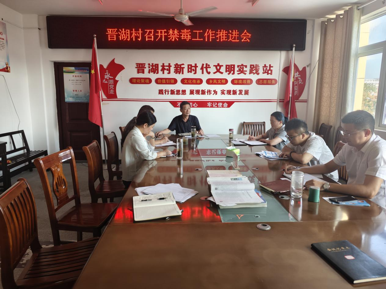 为坚决遏制毒品违法犯罪活动,近日,晋湖村召开禁毒工作推进会。
