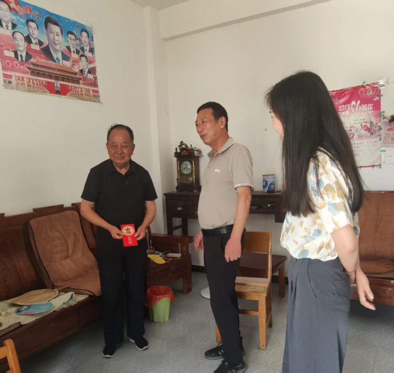 7月1日上午,值中国共产党成立104周年之际,晋熙镇蹲村负责人和晋湖村主要负责人一行走访慰问部分老党员、困难党员。
