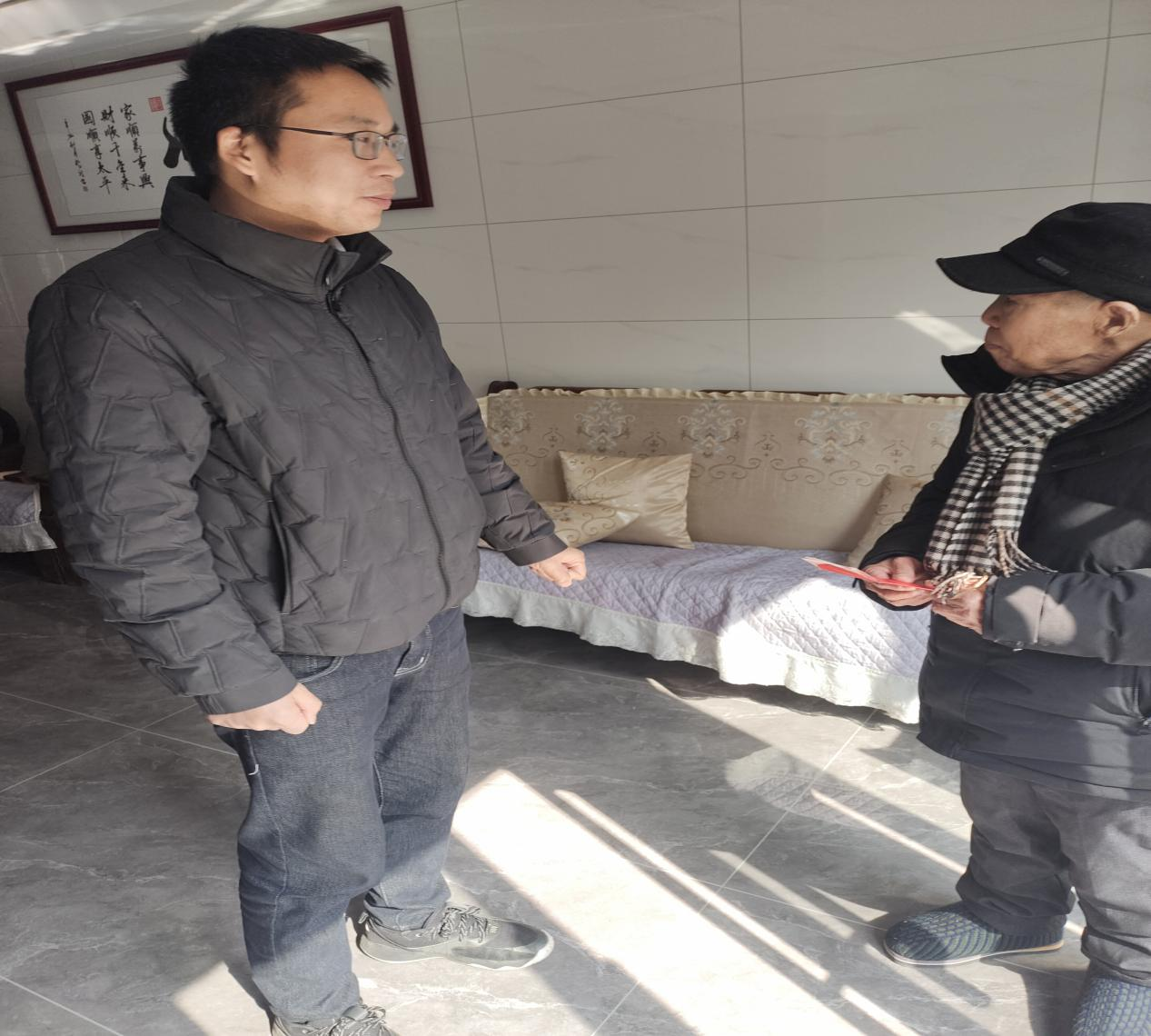 春节将至,为使湖滨村的困难党员过一个安定祥和的春节,充分感受到党和政府的关怀,2月8日,湖滨村党总支部开展走访慰问困难老党员活动,并且送上慰问金及新年的祝福。