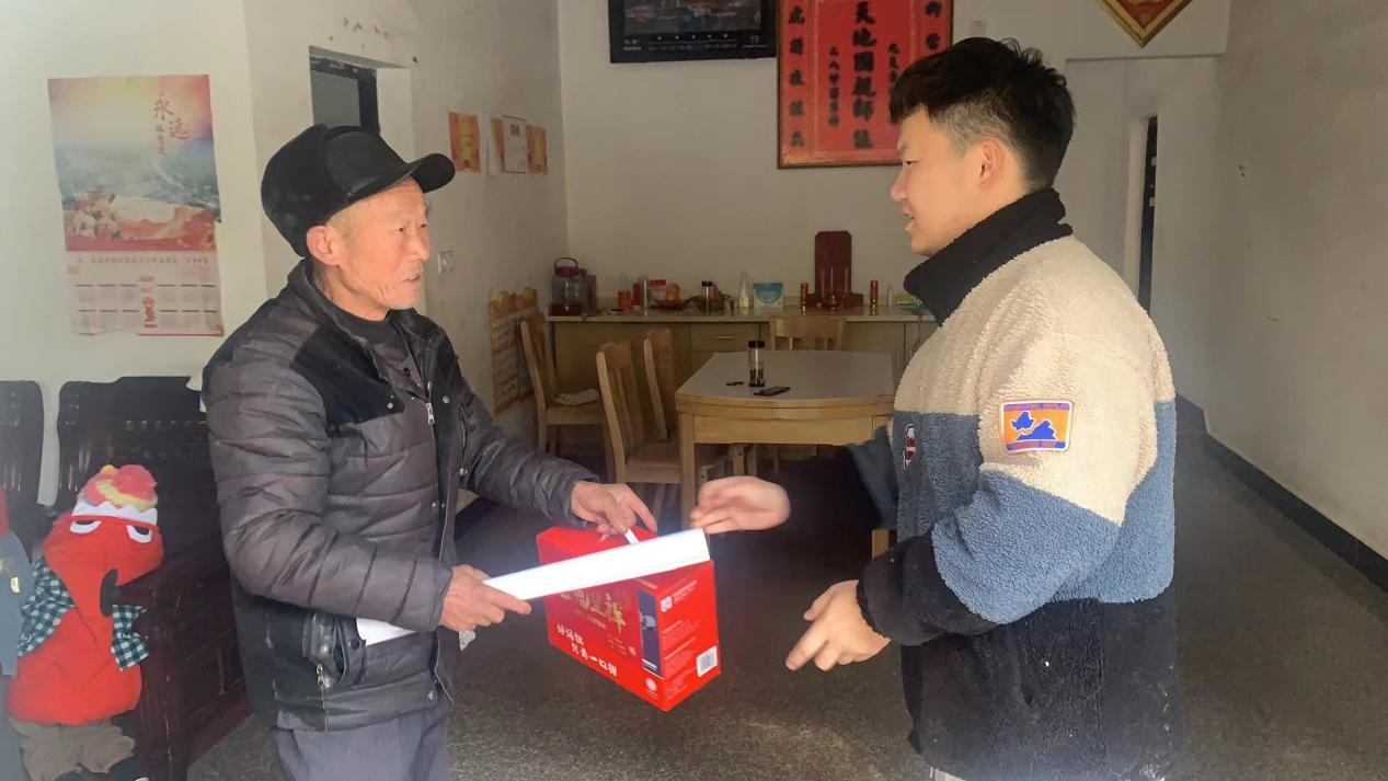 1月18日,九龙村工作人员给老党员送去春节慰问。
