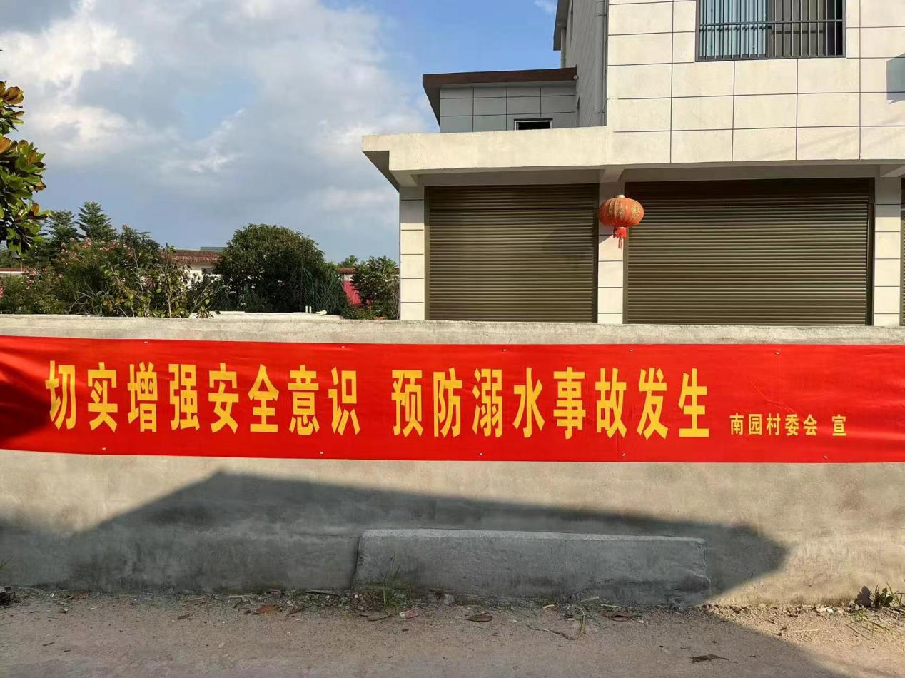 为了进一步加强村内居民防溺水安全意识,南园村通过张贴宣传横幅、电子显示屏滚动播放、开展专项会议等形式,多途径开展宣传活动,全方面地向群众宣传防溺水工作。