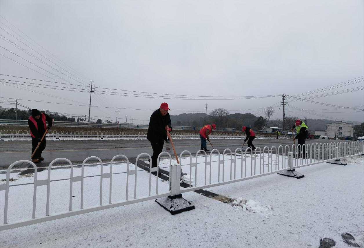 2月6日凌晨,太湖突降大雪,芭蕉村主干道跃进桥上也覆盖了厚厚的一层冰雪,为了往来车辆及行人的通行安全,芭蕉村迅速组织党员、道路专管员及志愿者开展铲雪除冰清障行动。