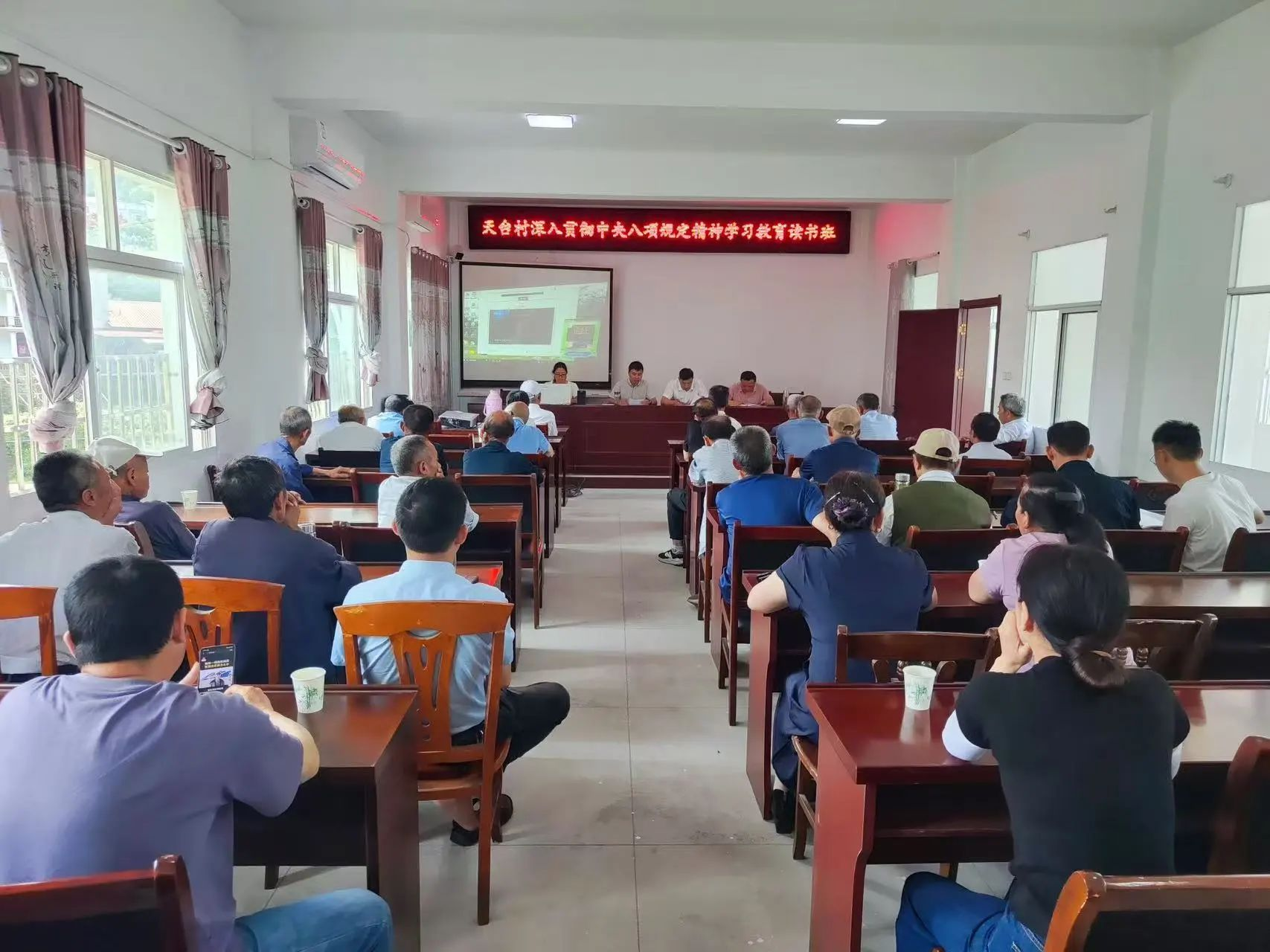 为持续巩固深化作风建设成果,天台村于近期成功举办了深入贯彻中央八项规定精神学习教育读书班。驻村工作队、村工作人员以及全体党员同志参加了此次学习活动。