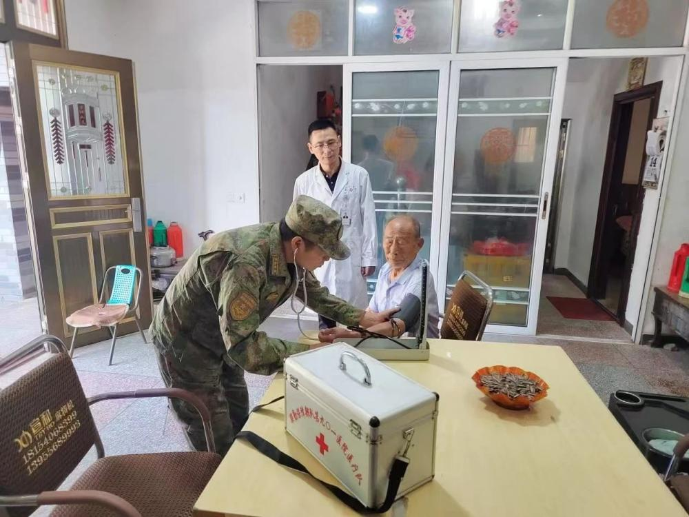 8月14日,合肥901军区医院精心组织一支由骨干军医和护理专家组成的医疗队,携带便携式诊疗设备和常用药品深入太湖县晋熙镇刘羊村,为退役军人优抚对象提供“点对点、门对门”的上门义诊服务。