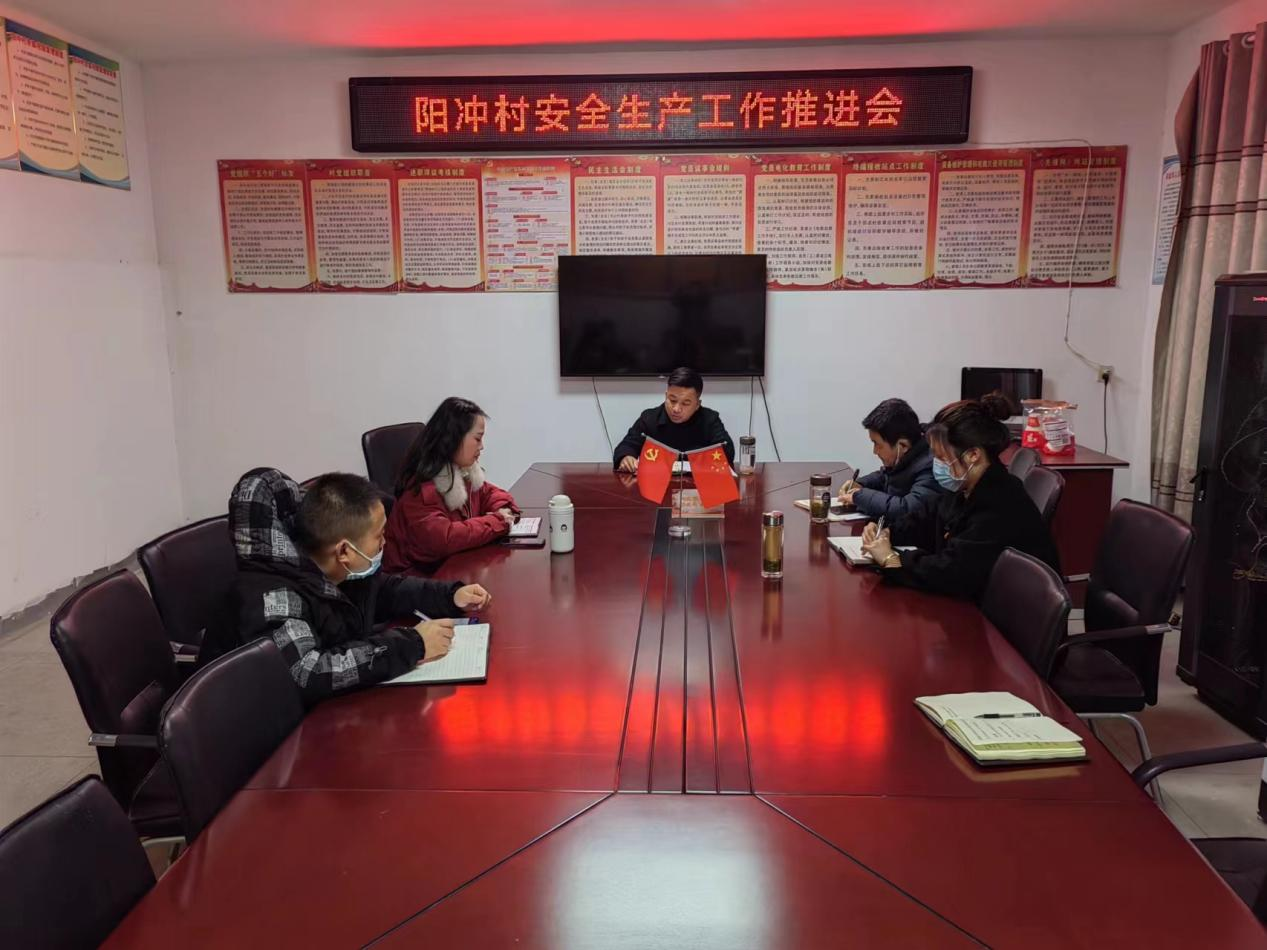 1月13日,阳冲村召开安全生产工作推进会?;嵘险率榧谴锪苏蚧嵋榫瘢航谄诩湟贾煤孟腊踩?、道路安全、工地安全、低温天气、雨雪天气、危险化学品、加油站、加气站、食品安全、四级包保等重点工作。